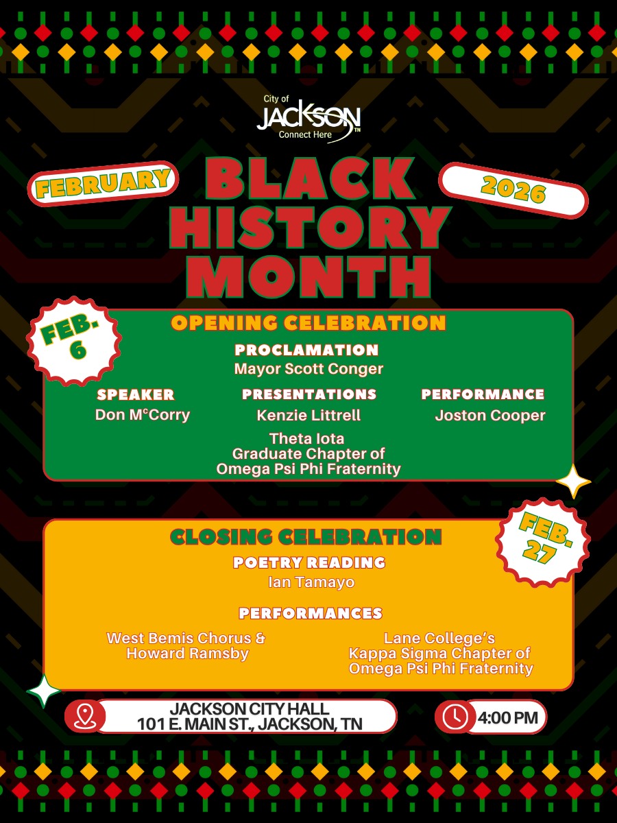 Jackson City Hall 101 E. Main St., Jackson, TN, United StatesThe City of Jackson will celebrate Black History Month during the month of February for the fourth year at city hall by showcasing performing arts from members of the city’s Black community. This year we celebrate the 100th Anniversary of Black History Month. “Negro History Week,” launched in 1926 by Dr. Carter G. Woodson (later […]